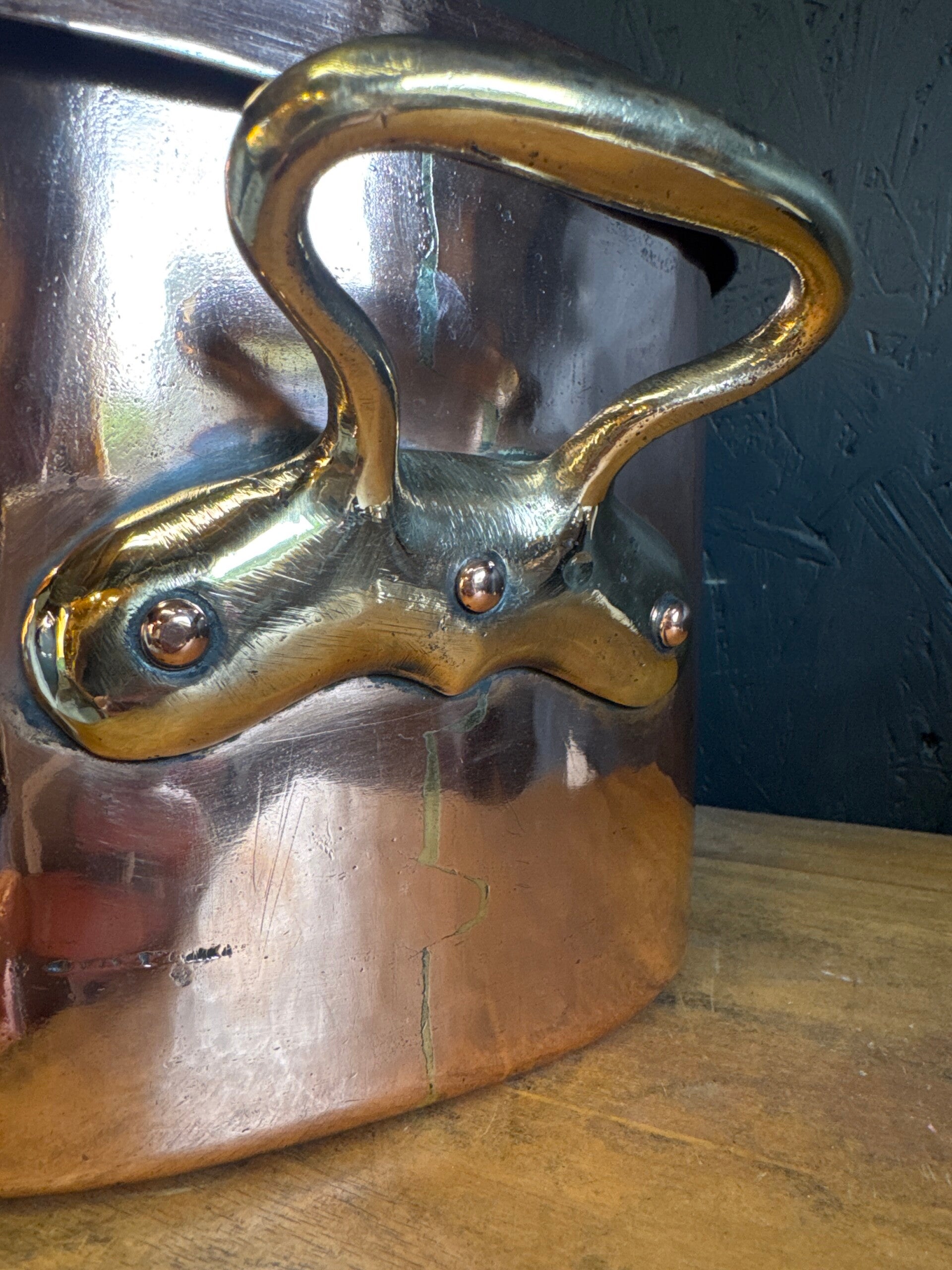 It has been fully restored, freshly retinned, and polished, so it’s not just beautiful to display it’s also ready to be used in your kitchen right away. A true statement piece that combines history, craftsmanship, and charm. Perfect for slow cooking, or simply as a stunning decorative accent in your home.